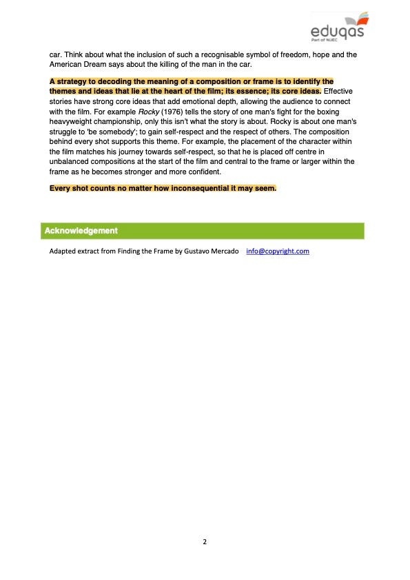 A strategy to decode the composition or frame of a film is to identify the themes and ideas that lie at the heart of the film